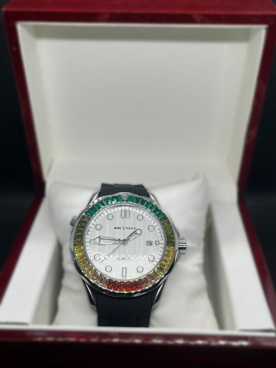 This AOCASDIY men's quartz wristwatch combines durability and style, featuring a round alloy case, Hardlex dial window, and a 3BAR water resistance depth. The luminous hands and chronograph functionality enhance its practicality for both business and leisure use. With a comfortable silicone band and sleek 42mm dial diameter, it offers versatile design suitable for everyday wear.