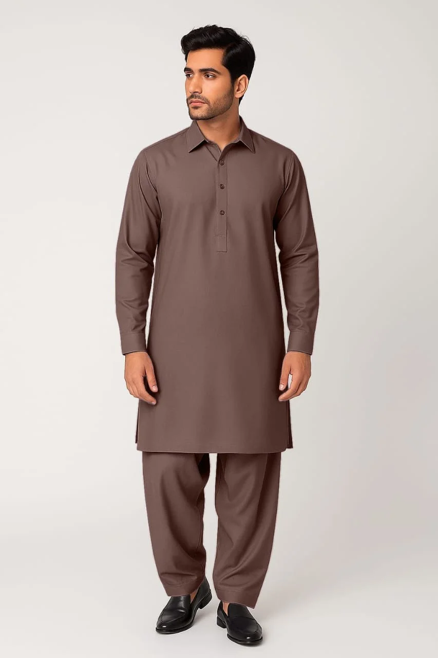 Premium brown wash & wear suit offering a classic eastern look with modern comfort. Wrinkle-resistant, breathable, and easy to maintain—perfect for any occasion.