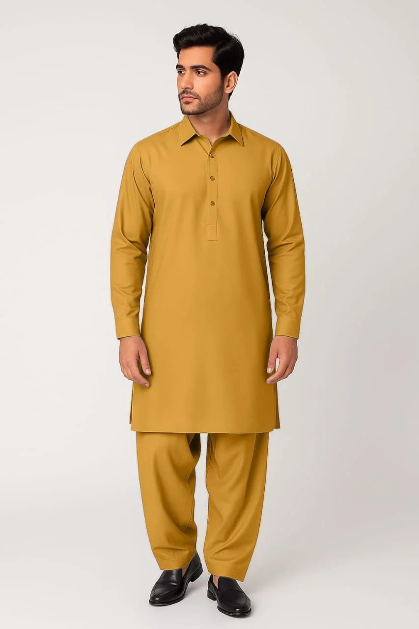 A timeless classic Kameez Shalwar, designed with refined detailing and a sophisticated camel hue. Expertly tailored from premium wash & wear fabric, this ensemble blends elegance with everyday practicality. Perfect for both festive gatherings and daily wear, offering unmatched comfort and a dignified eastern look.