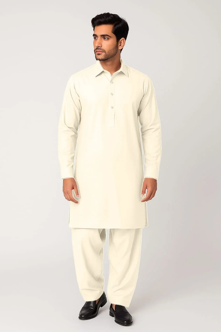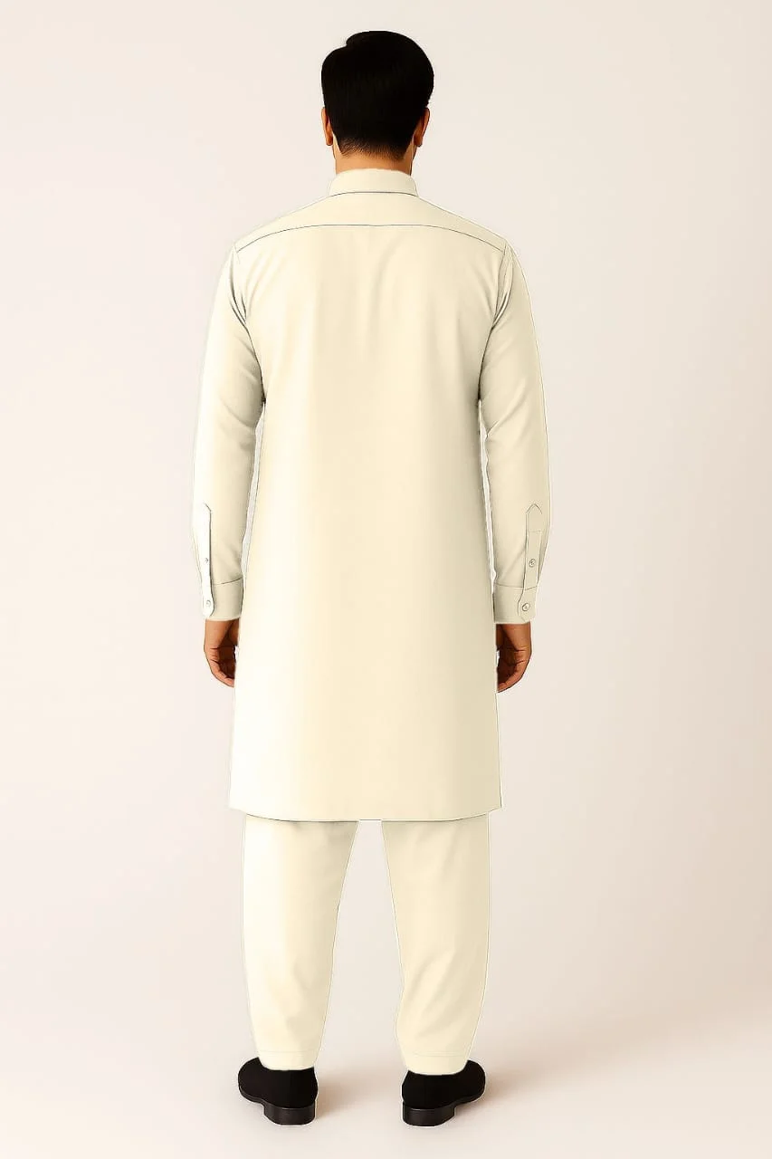 Premium cream wash & wear suit offering a classic eastern look with modern comfort. Wrinkle-resistant, breathable, and easy to maintain—perfect for any occasion.